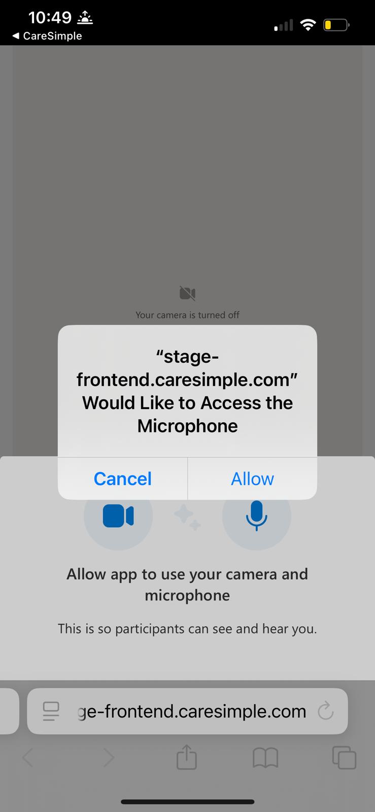 2. Tap on the link to open the video call, activate your microphone and camera and click the join call button.