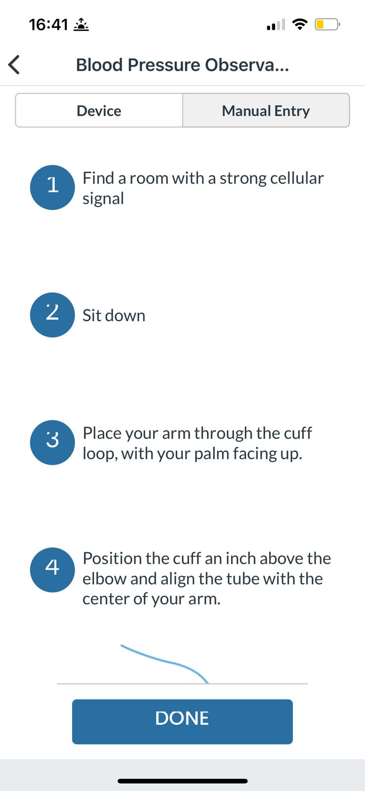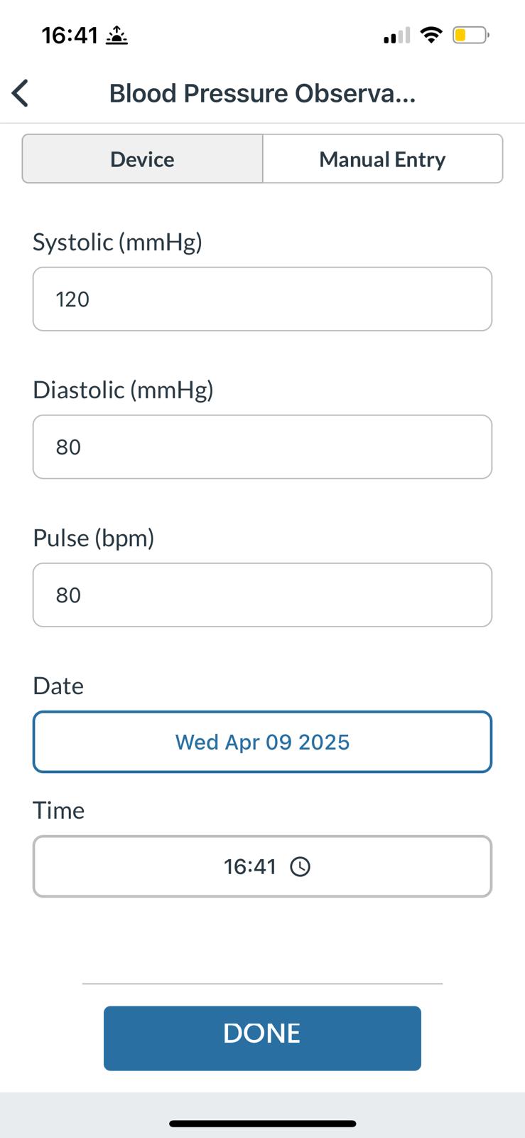 2. After that, select the method you want to enter your results : either directly with the device or Manual Entry. If you choose directly with the device, follow the instructions on screen or refer to the specific to the specific help page corresponding to the device you are using. If you choose to enter your measurement manually, go to the next step.